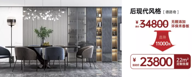 此次活動歐蒂尼推出無醛禾香板全屋定制22㎡只需19800元超值鉅惠套餐。買1送5,購買此套餐,可免費享受價值2800㎡榻榻米2㎡、價值1980元櫥柜2㎡地柜、價值2560元精品木門一扇和價值380元時尚穿衣鏡一面以及價值199元的精美禮品一份。