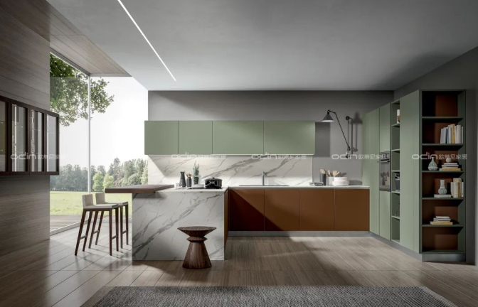 在上世紀二三十年代功能主義家庭理論的發展過程中,人體工程學被用來設計室內空間,主要是盡可能節省和利用廚房空間。一般根據戶型情況,廚房布局大多設計為L型、U型、島型、一字型。L型廚房充分利用轉角,形成取、洗切、烹工作區三角是最常見的廚房布局,空間利用率高尤其適合長方形和小戶型廚房。